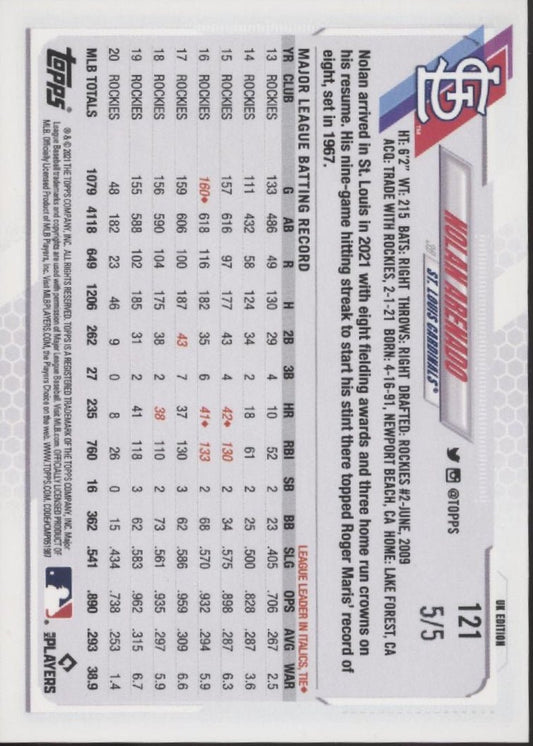 Nolan Arenado 2021 Topps UK Edition Red 5/5 #121