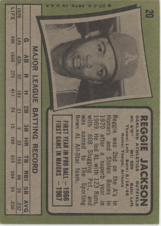 Reggie Jackson 1971 Topps #20 Oakland Athletics VG #3
