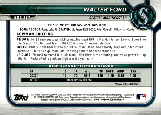 Walter Ford 2022 Bowman Chrome Prospects Speckle Refractor #BDC-187
