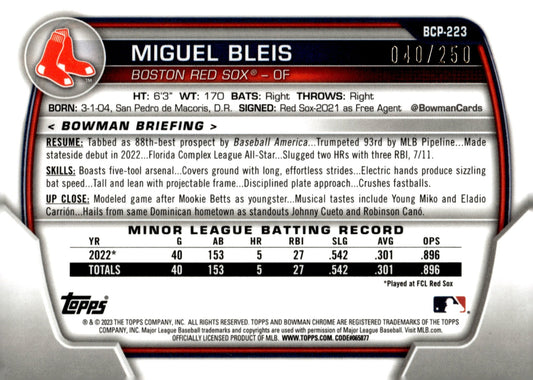Miguel Bleis 2023 Bowman Chrome Purple Refractor 040/250 #BCP-223