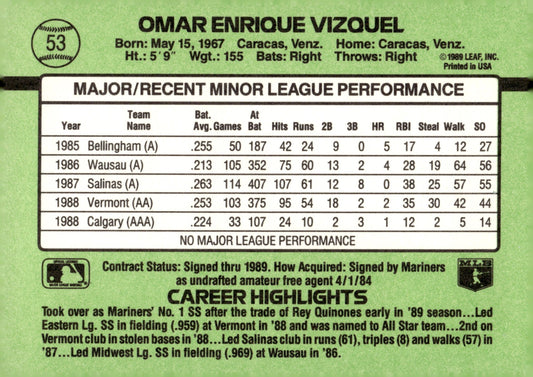 Omar Vizquel 1989 Donruss The Rookies RC #53