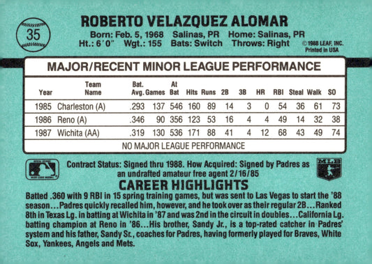 Roberto Alomar 1988 Donruss The Rookies RC #35