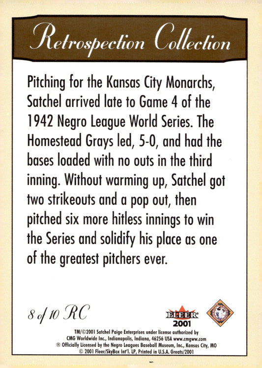 Satchel Paige 2001 Fleer Greats of the Game Retrospection Collection #8