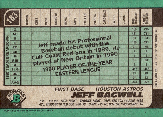 Jeff Bagwell 1991 Bowman MVP RC #183