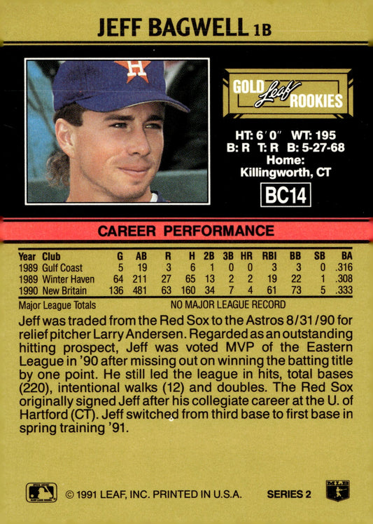 Jeff Bagwell 1991 Leaf Gold Rookies RC #BC14