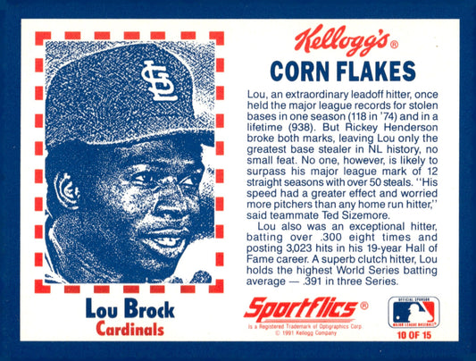 Lou Brock 1991 Kellogg's Baseball Greats #10