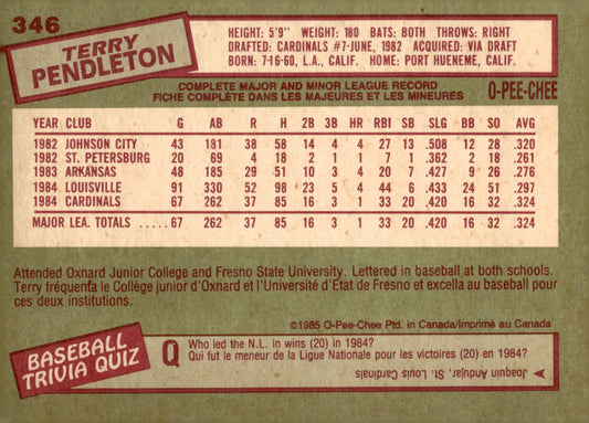 Terry Pendleton 1985 O-Pee-Chee RC #346