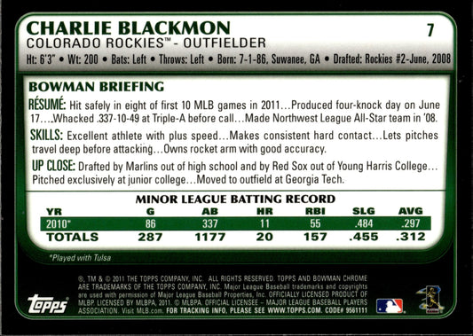 Charlie Blackmon 2011 Bowman Chrome RC #7