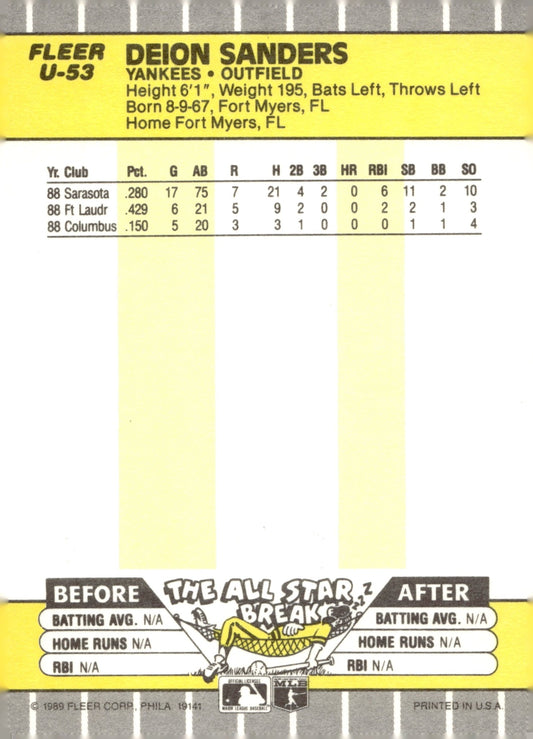 Deion Sanders 1989 Fleer Update #U-53 #2