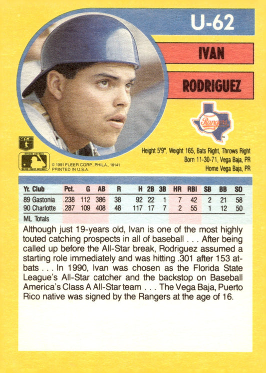 Ivan Rodriguez 1991 Fleer Update RC #U-62 #2