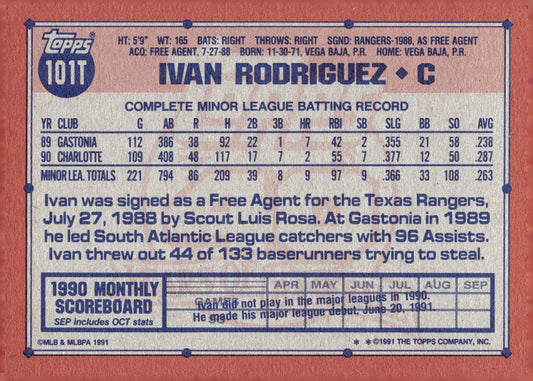 Ivan Rodriguez 1991 Topps Traded RC #101T #1