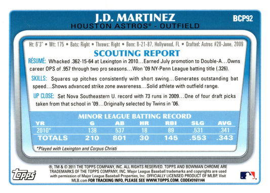 JD Martinez 2011 Bowman Chrome #BCP92 #2
