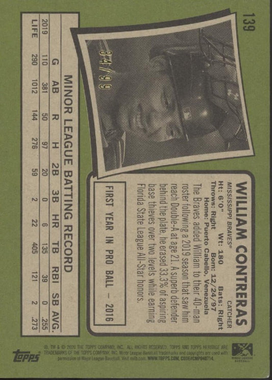 William Contreras 2020 Topps Heritage Blue 34/99 #139