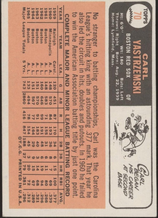 Carl Yastrzemski 1966 Topps #70 Boston Red Sox VG-EX
