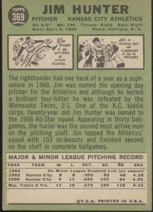 Jim Hunter 1967 Topps #369 Kansas City Athletics VG #3