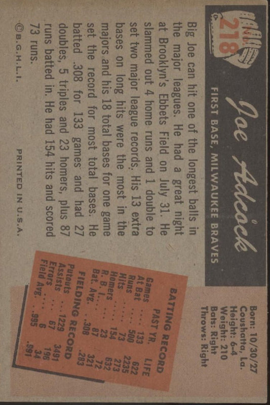 Joe Adcock 1955 Bowman #218 Milwaukee Braves VG