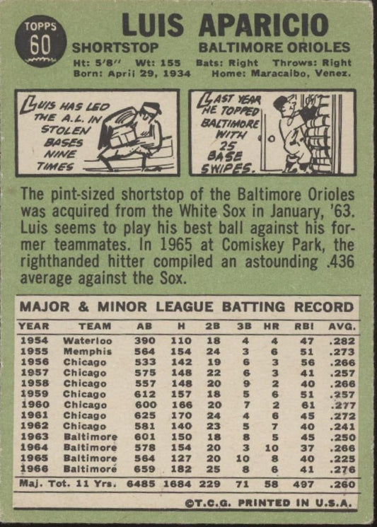 Luis Aparicio 1967 Topps #60 Baltimore Orioles VG