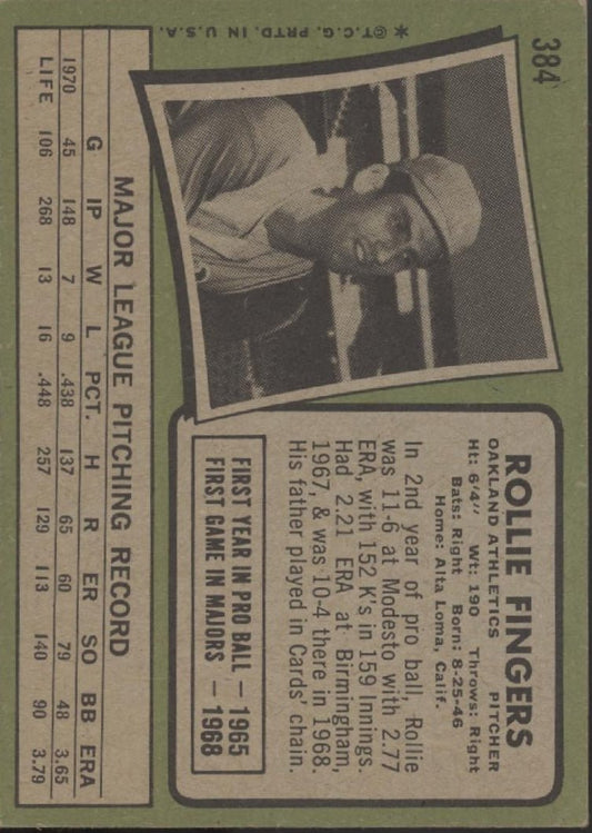Rollie Fingers 1971 Topps #384 Oakland Athletics VG