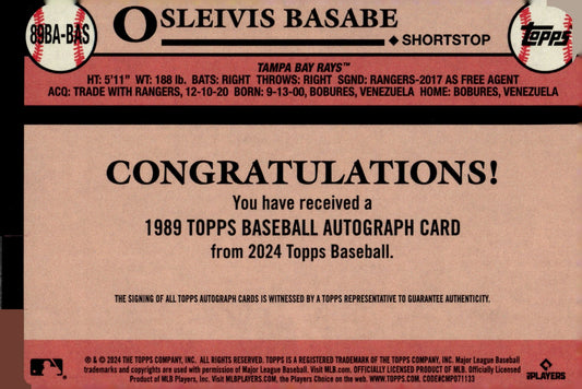 Osleivis Basabe 2024 Topps '89 RC Auto #89BA-BAS