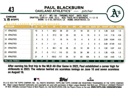 Paul Blackburn 2024 Topps Chrome Blue Ray Wave Refractor 127/150 #43