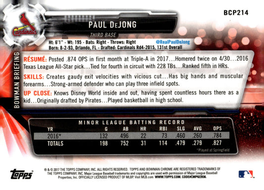 Paul DeJong 2017 Bowman Chrome RC #BCP214
