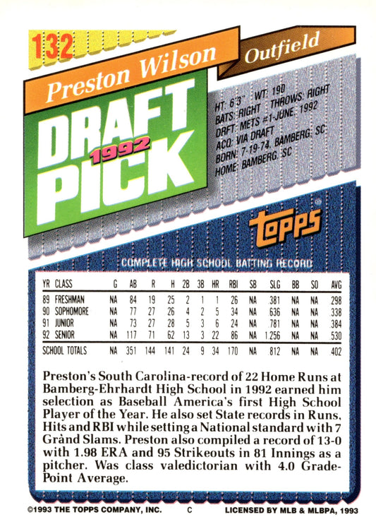 Preston Wilson 1993 Topps Gold Draft Pick #132