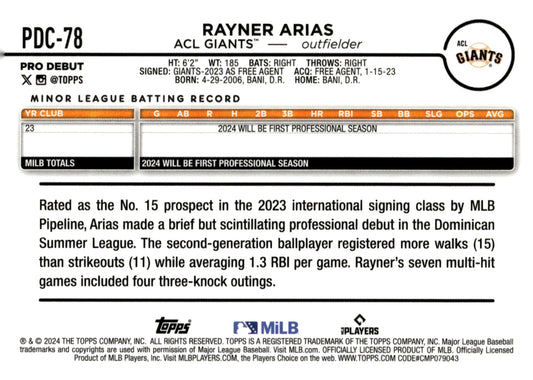 Rayner Arias 2024 Topps Chrome Pro Debut Blue Refractor #PDC-78