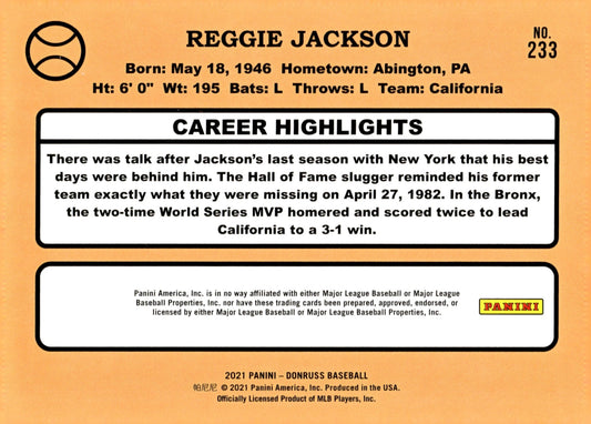 Reggie Jackson 2021 Panini Donruss Red 0506/2021 #233