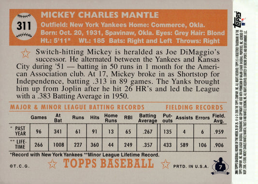 Mickey Mantle 2006 Topps Mickey Mantle Story #311 #2