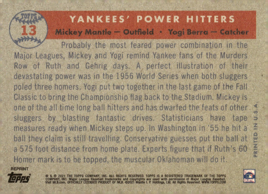 Mickey Mantle / Yogi Berra 2021 Topps x Mickey Mantle Yankee' Power Hitters #13