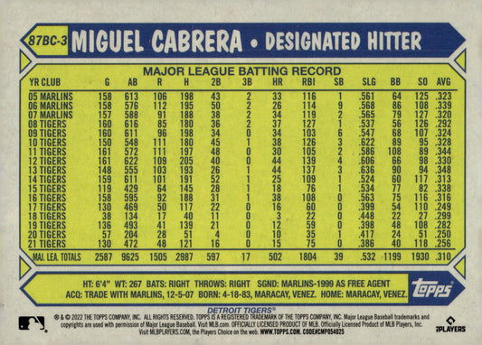 Miguel Cabrera 2022 Topps Chrome 35th Anniversary Refractor #87BC-3