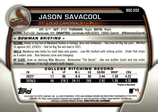 Jason Savacool 2023 Bowman Chrome Blue Ice Refractor #BDC-200