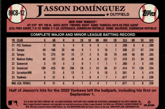 Jasson Dominguez 2024 Topps Chrome 35th Anniversary Refractor RC #89CB-12