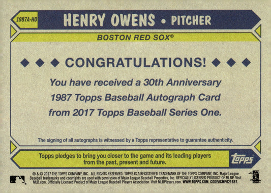 Henry Owens 2017 Topps Series 1 '87 Auto #1987A-HO