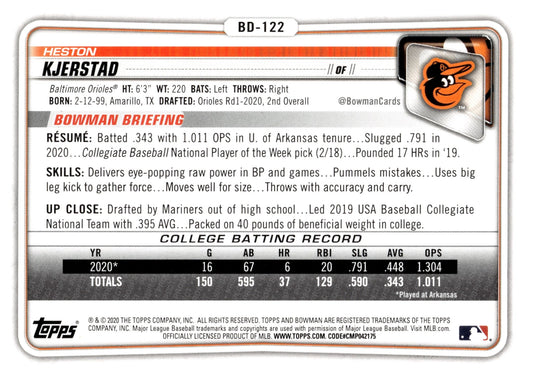Heston Kjerstad 2020 Bowman Prospect #BD-122