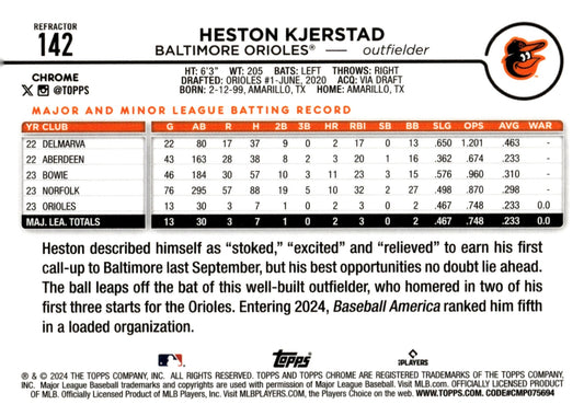 Heston Kjerstad 2024 Topps Chrome Refractor RC #142
