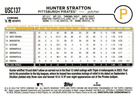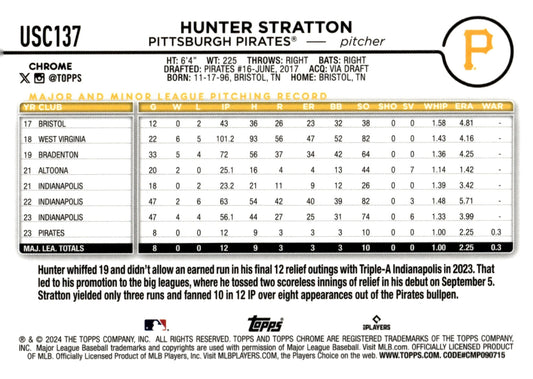 Hunter Stratton 2024 Topps Chrome Xfractor Refractor RC #USC137