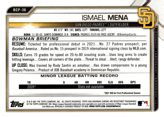Ismael Mena 2021 Bowman Chrome Prospect #BCP-36
