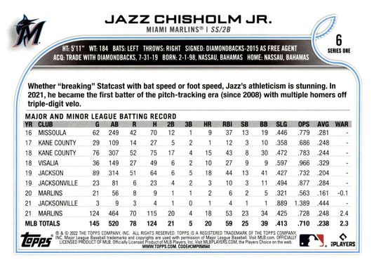 Jazz Chisholm Jr. 2022 Topps Series 1 #6