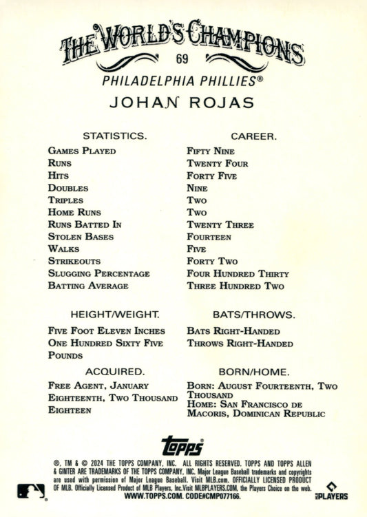 Johan Rojas 2024 Topps Chrome Allen & Ginter Xfractor Refractor RC #69