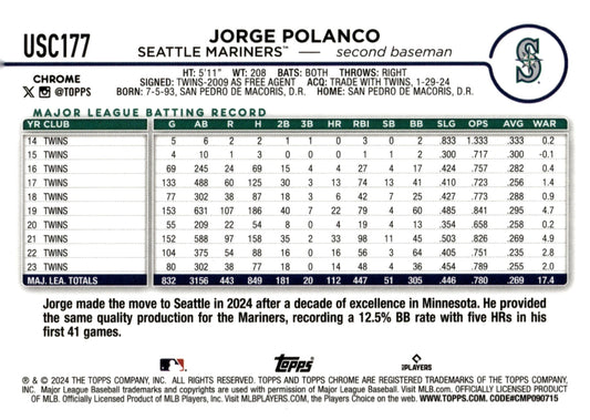 Jorge Polanco 2024 Topps Chrome Magenta Refractor #USC177