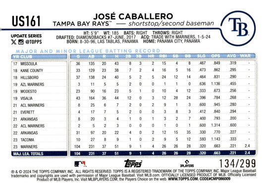 Jose Caballero 2024 Topps Update Series Orange Foilboard 134/299 #US161