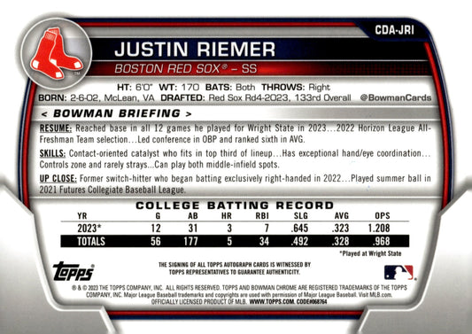 Justin Riemer 2023 Bowman Chrome Auto #CDA-JRI