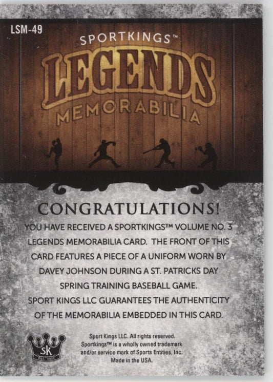 Dave Johnson 2022 Sport Kings Volume 3 Legends Game Worn Swatch #LSM-49