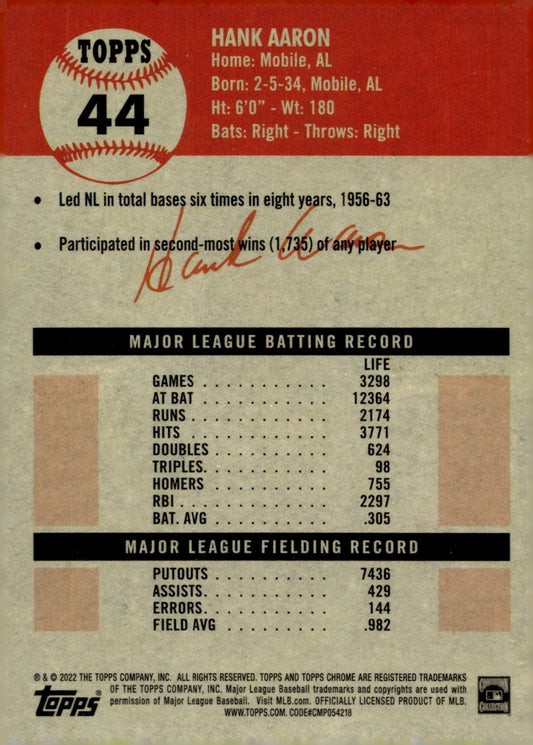Hank Aaron 2022 Topps Chrome Platinum #44