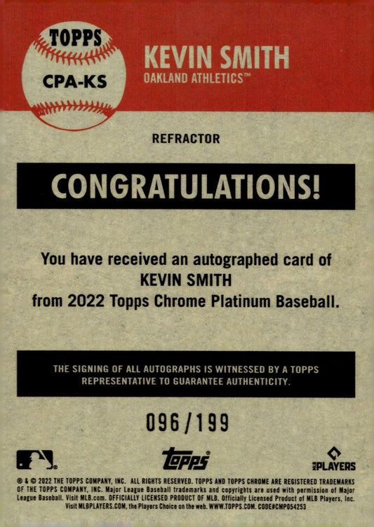 Kevin Smith 2022 Topps Chrome Platinum Refractor RC Auto 096/199 #CPA-KS