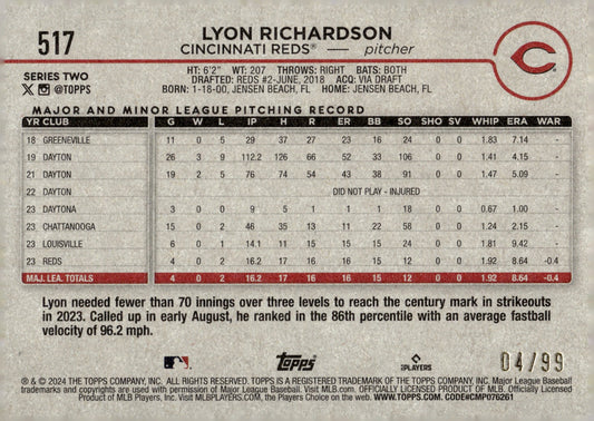 Lyon Richardson 2024 Topps Series 2 Vintage Stock RC 04/99 #517