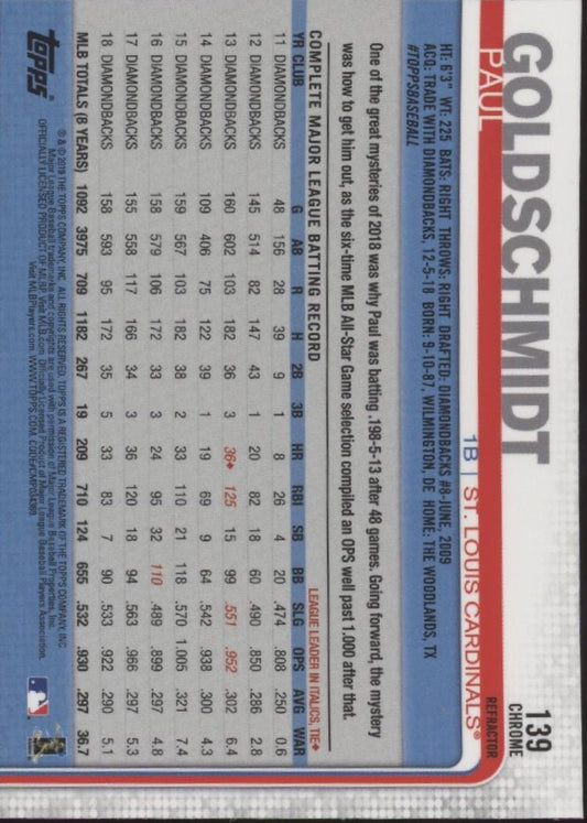 Paul Goldschmidt 2019 Topps Chrome Xfractor Refractor #139