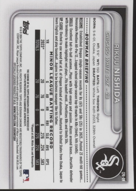 Rikuu Nishida 2024 Bowman Chrome Green Refractor Auto 69/99 #CPA-RN