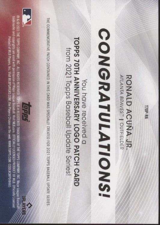 Ronald Acuna Jr. 2021 Topps Update Series 70th Anniversary Logo Patch #T70P-RA